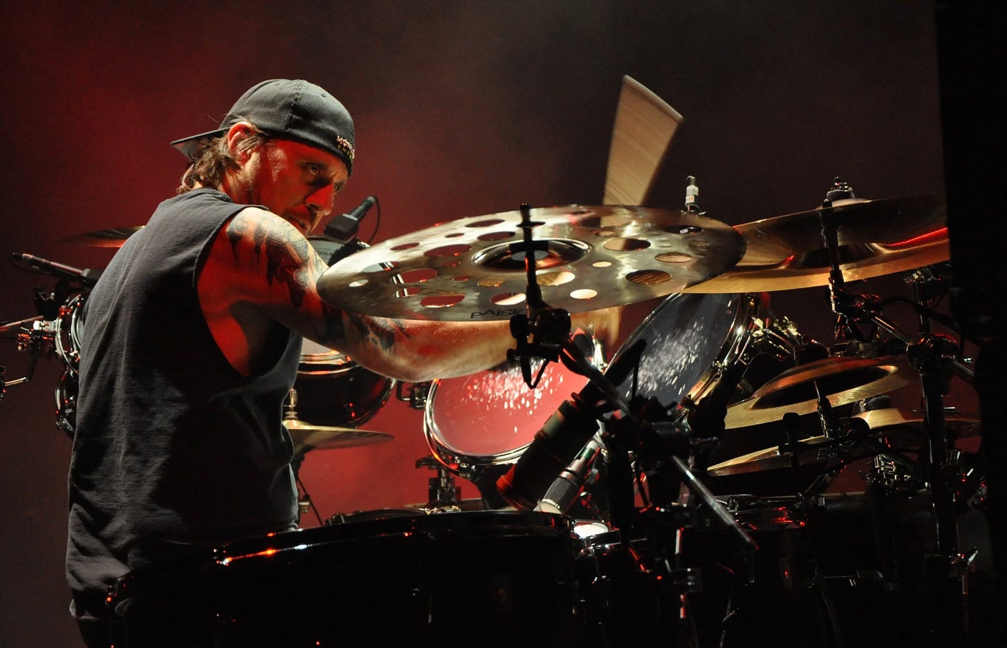 Dave Lombardo describes drumming as a physical and psychological state—an adrenaline-fueled zone shaped by endorphins, focus, and years of muscle memory. He compares the experience to athletes and fighters preparing for a match, explaining how nothing replicates the energy of the stage: lights, volume, audience, and the emotional release that follows.